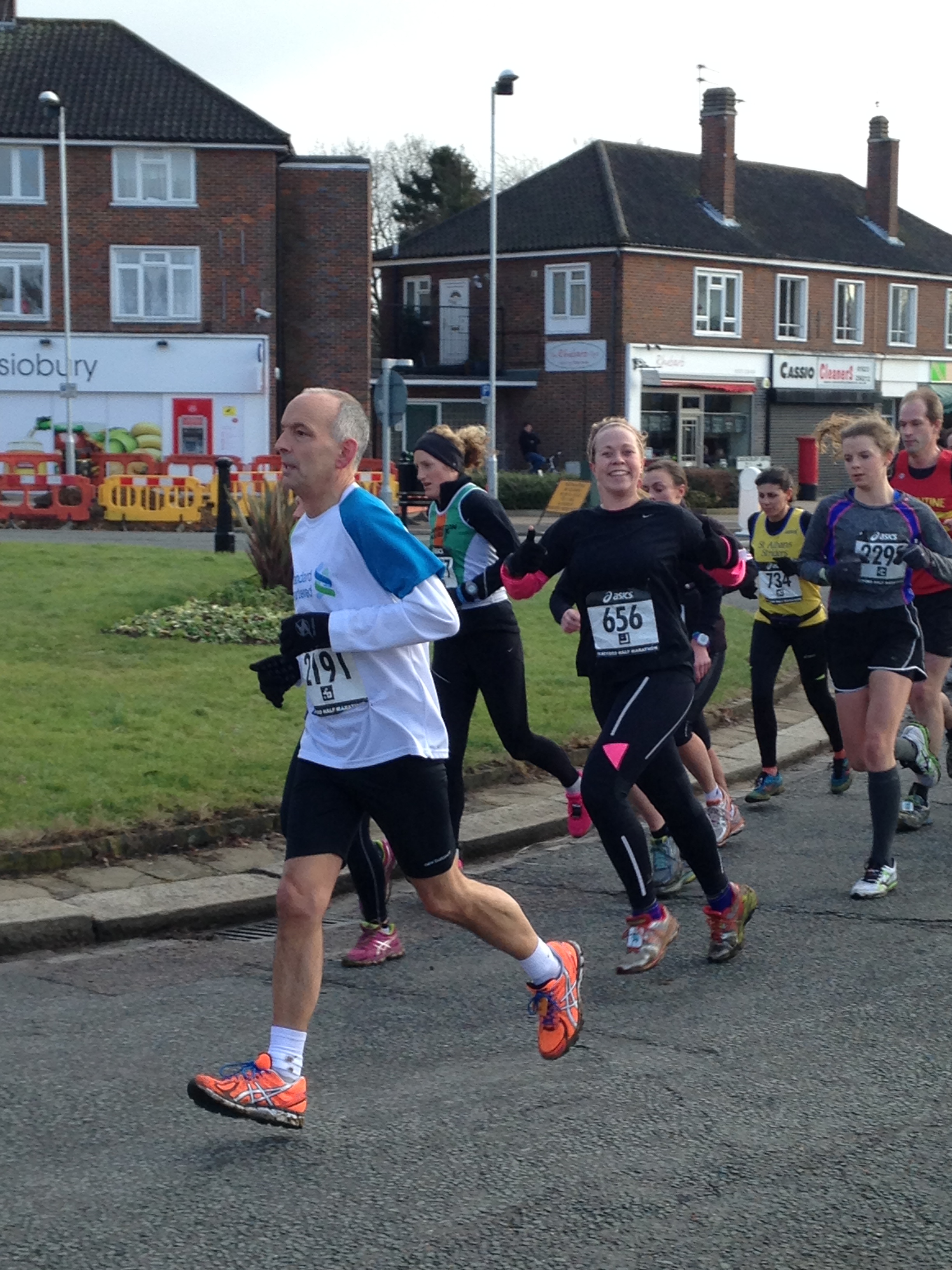 You start in Cassiobury Park, there’s loads of nearby parking, plus it’s fairly close to the Met line tube station. They actually split the starts – senior men and then ladies/men’s vets, but you probably join together again about .75 of a mile in. So not segregated for long.